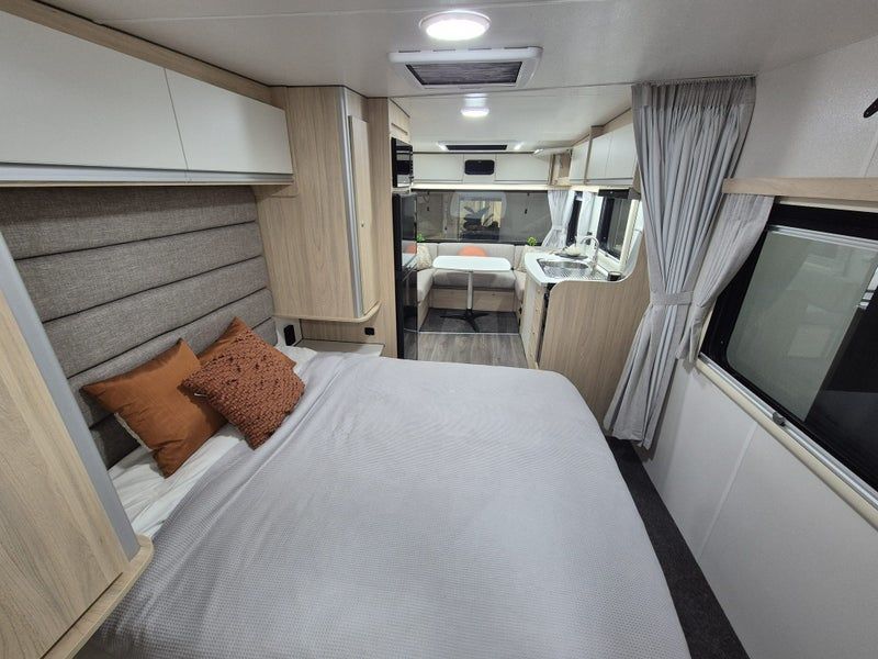 Popular layout with island bed, 1m deep shower / bathroom and a u-shape lounge bed