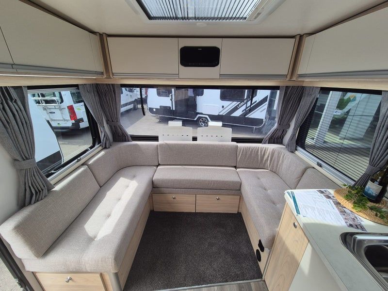 Popular layout with island bed, 1m deep shower / bathroom and a u-shape lounge bed