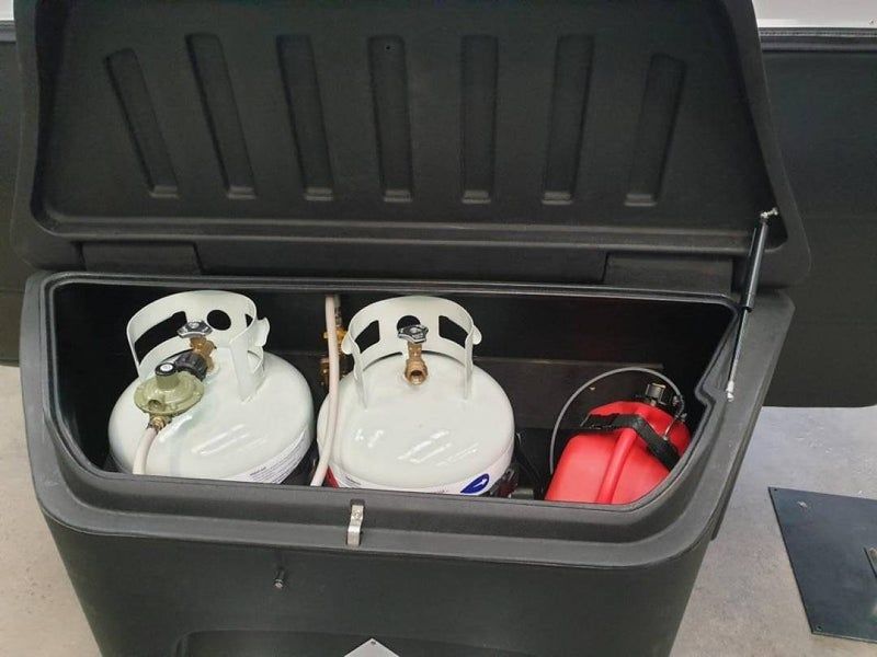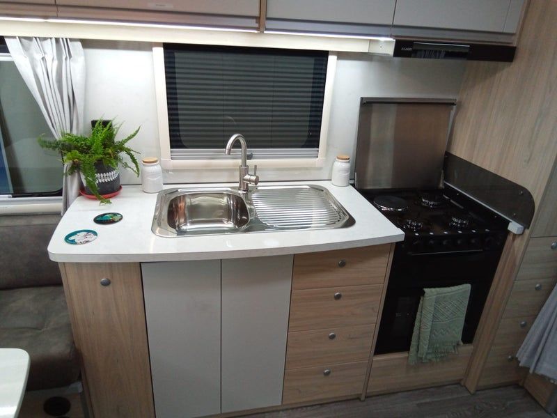 Exterior Fittings: Spare tyre, BBQ point, 240v plug, Fold down picnic table, Waltex box with 2 x 9kg gas bottles, Outdoor hot/cold shower, Pull out Cvana shade awning