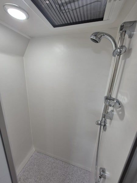 Exterior Fittings: Spare tyre, BBQ point, 240v plug, Fold down picnic table, Waltex box with 2 x 9kg gas bottles, Outdoor hot/cold shower, Pull out Cvana shade awning
