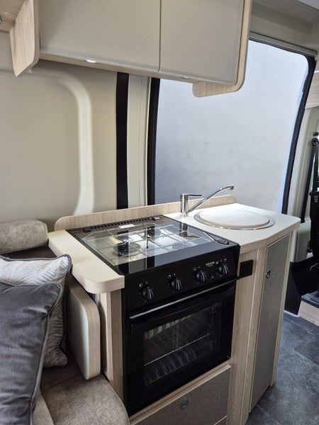 Features include a well-equipped kitchen with a hob and grill, a washroom, and ample storage for its compact size.