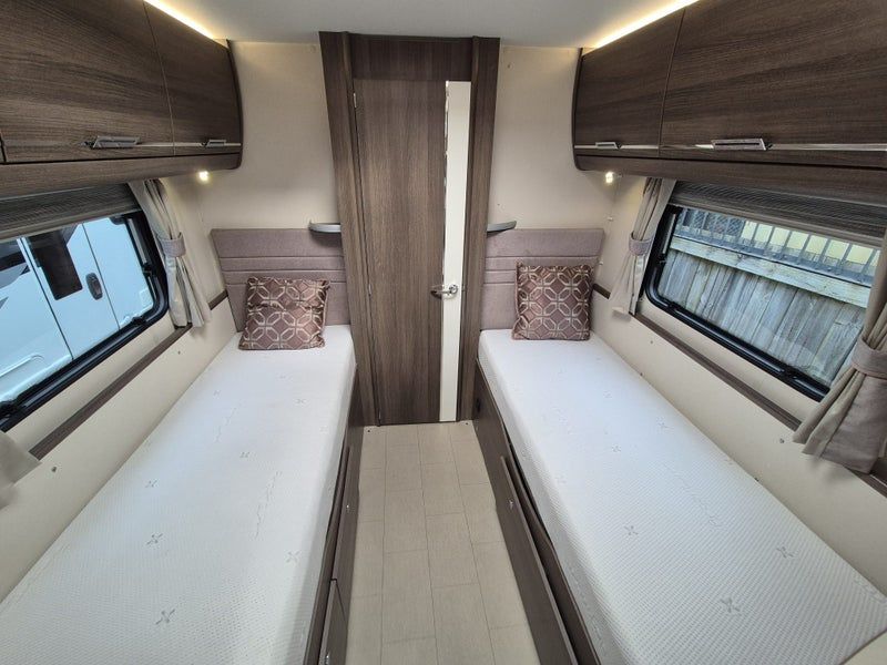 Beds: Fixed rear single beds and a double bed that converts from the front lounge