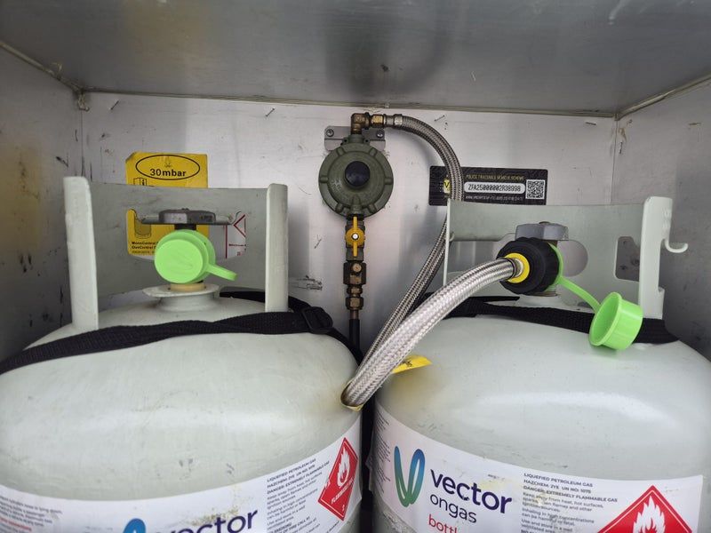 Kitchen: Includes a 3-burner gas hob, one 240v hotplate, grill, oven, microwave, and a 3-way fridge/freezer