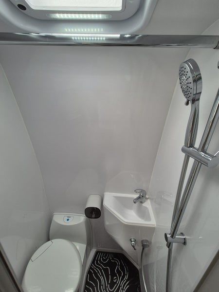 Bathroom: Features a new molded liner, an extra skylight with an extractor fan, and a two-way tap for the basin and shower
