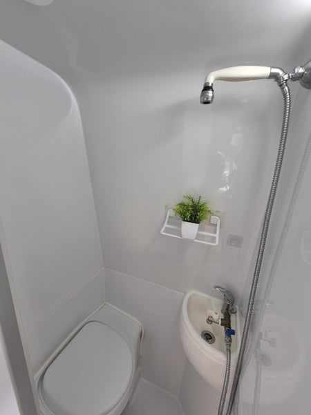 Bathroom: Thetford cassette toilet and flex hose shower