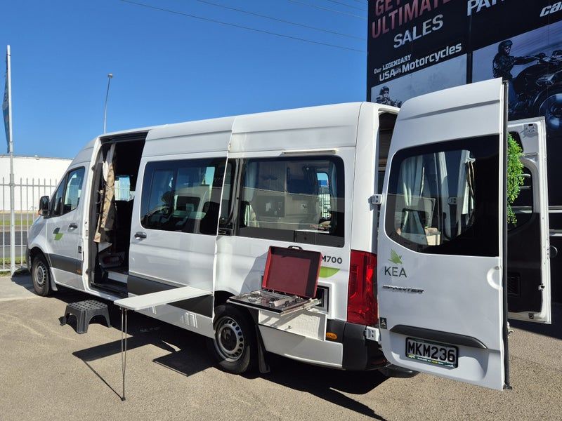 The popular and versatile Kea Nomad M700, 7 meter, high roof, fully self contained 3 berth NZ fitted motorhome in a LWB Mercedes Sprinter body