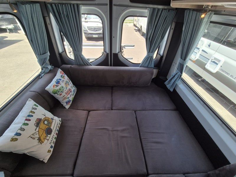 Featuring a fold out 6 foot single bed at the front and a U-Shaped Lounge at the rear which transforms into a N/S King, a 1.9m east west double bed or 2x1.9m singles