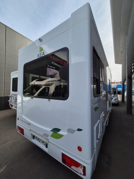 The Kea Platinum features a layout very popular with motorhome renters and owners alike, with a double bed / couch at the rear, a cafe-style dinette behind the driver's seat that becomes a 6 foot double bed and, being a C-class motorhome, with a luton bed above the cab